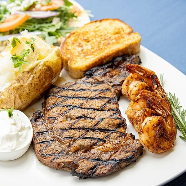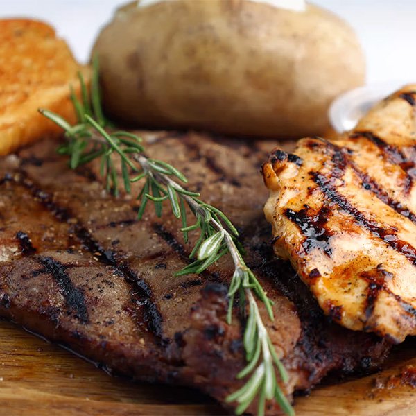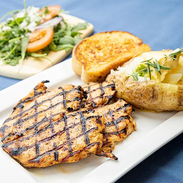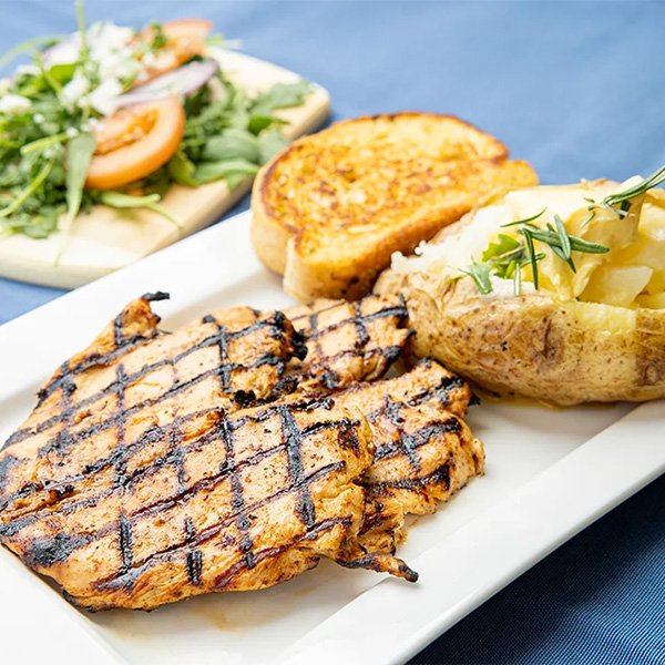 2 Butterfly Chicken Breast, Served with baked potato, salad & texas toast