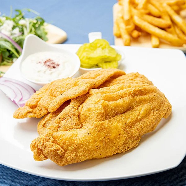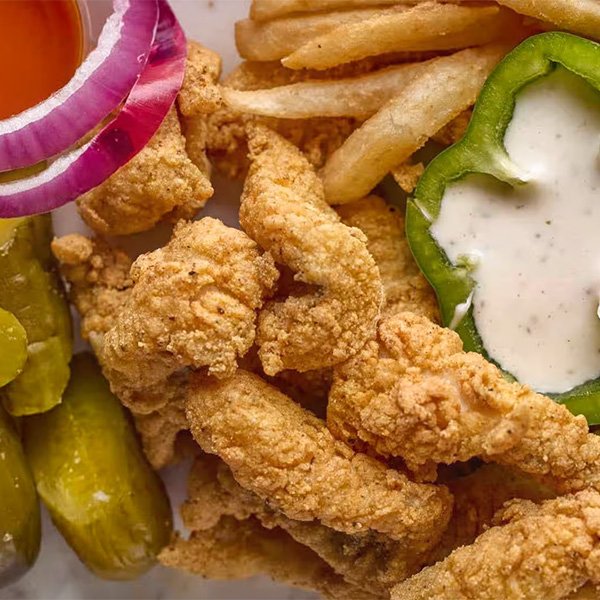 Choose any two from the following options: 2 Chicken Tenders, 4 Wings, 10 Shrimp, 2 Jack Salmon Fillets, Catfish Nuggets, Chicken Nuggets, Chicken Gizzards, Catfish Fillet add $4, Tilapia Fillet add $3